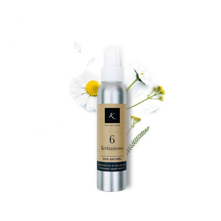 Spray capillaire à base d'hydrolats bi-distillés de Camomille noble, de Tanaisie annuelle et de Poivre noir.
